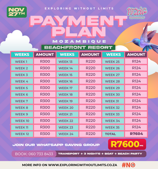 Following our 2025 successful collaboration wiith Snap Sundays, we are bringing back Exploring Without Limits Holiday Mozambique with our next collab, Picnic Cookout - a social market/event in Shayandima, Thohoyandou that boasts of great afternoon vibes and colourful nights around good company, music and food. Join us as we take this event to Bilene Mozambique.